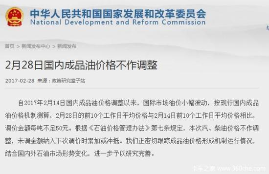 2月28日晚24时,2017年第四次成品油调价窗口开启。据发改委称,由于本轮周期成品油调价金额每吨不足50元,故此次调价搁浅。
